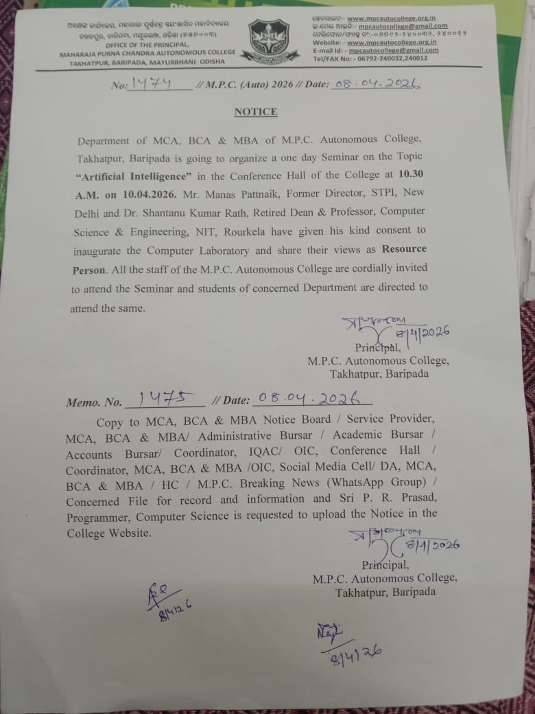 It is my privilege to welcome you to MPC Autonomous College, Baripada, an institution with a proud legacy of academic excellence, cultural vibrancy, and ...