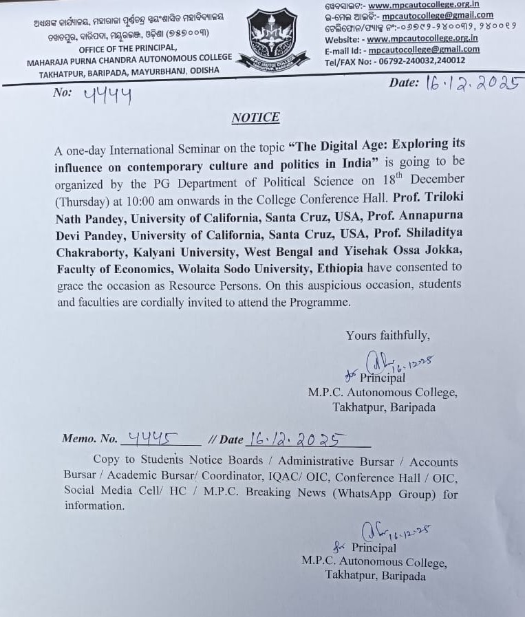 17/12/2025 : One day International Seminar on 18th dec 2025