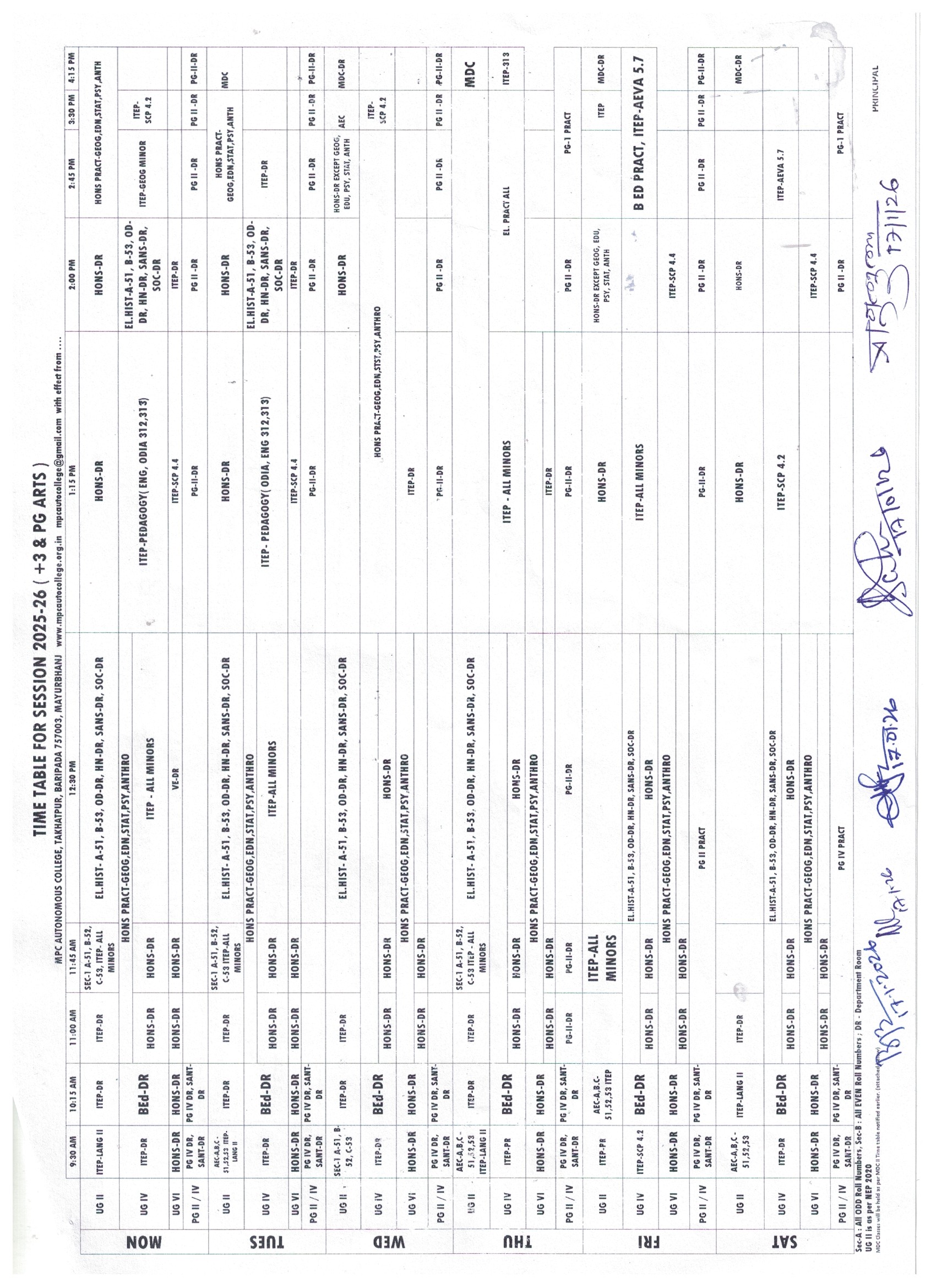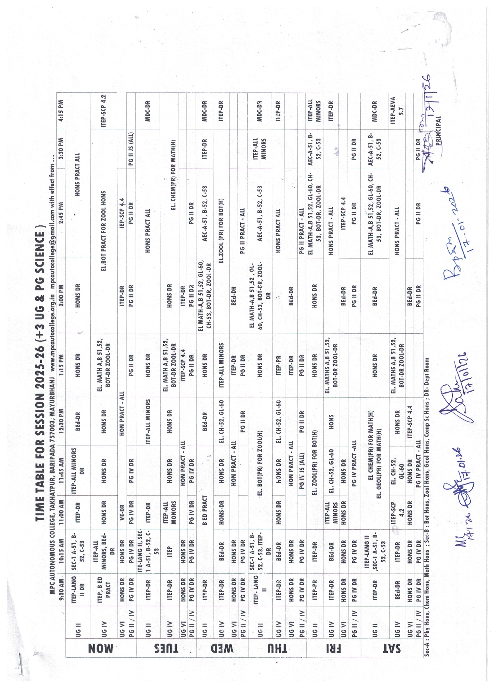20/01/2026 : Time Table - Even Sems - 2025-26 - UG & PG Science