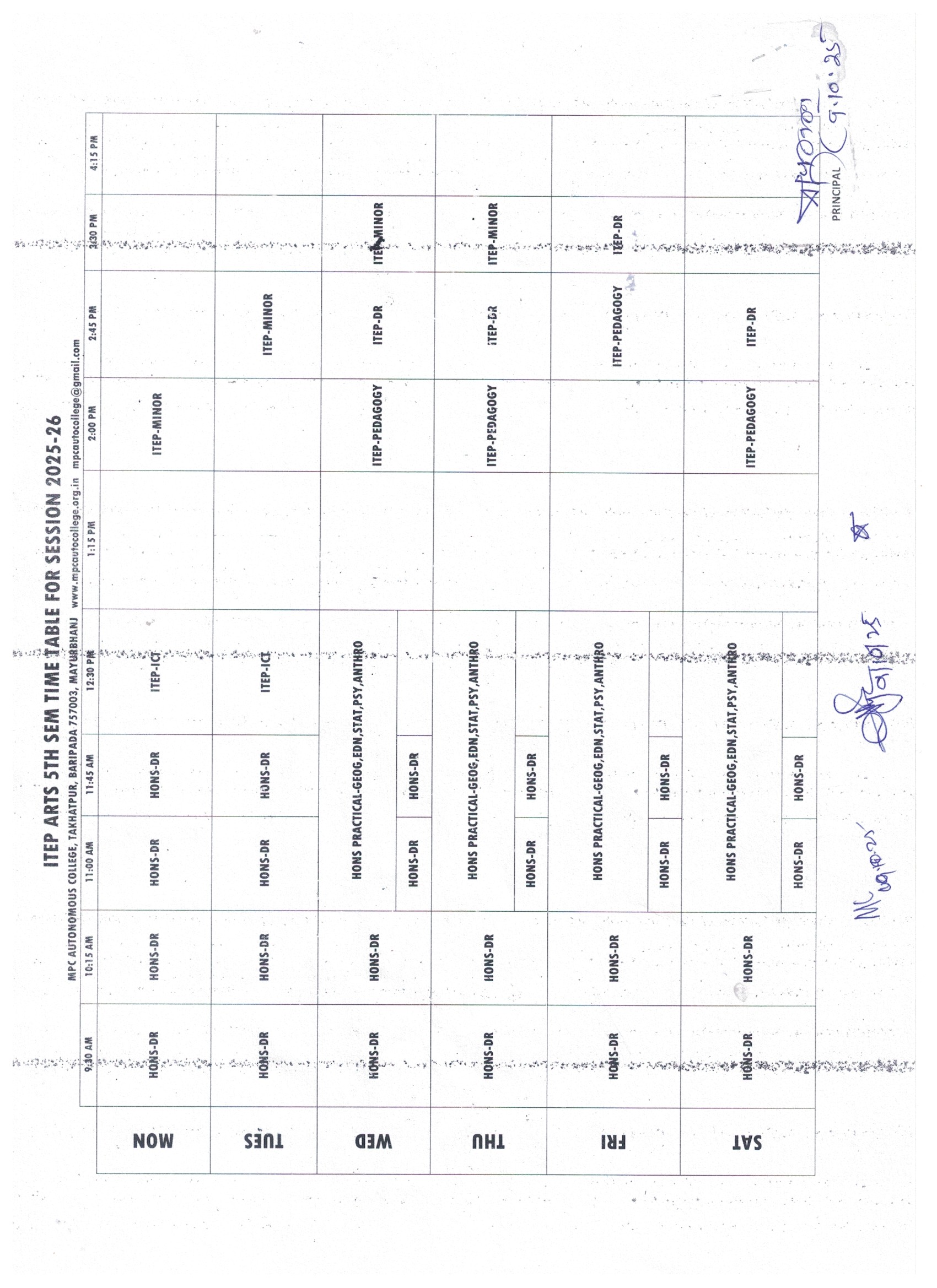 09/10/2025 : Time Table - ITEP Arts 5th SEM 2025-26