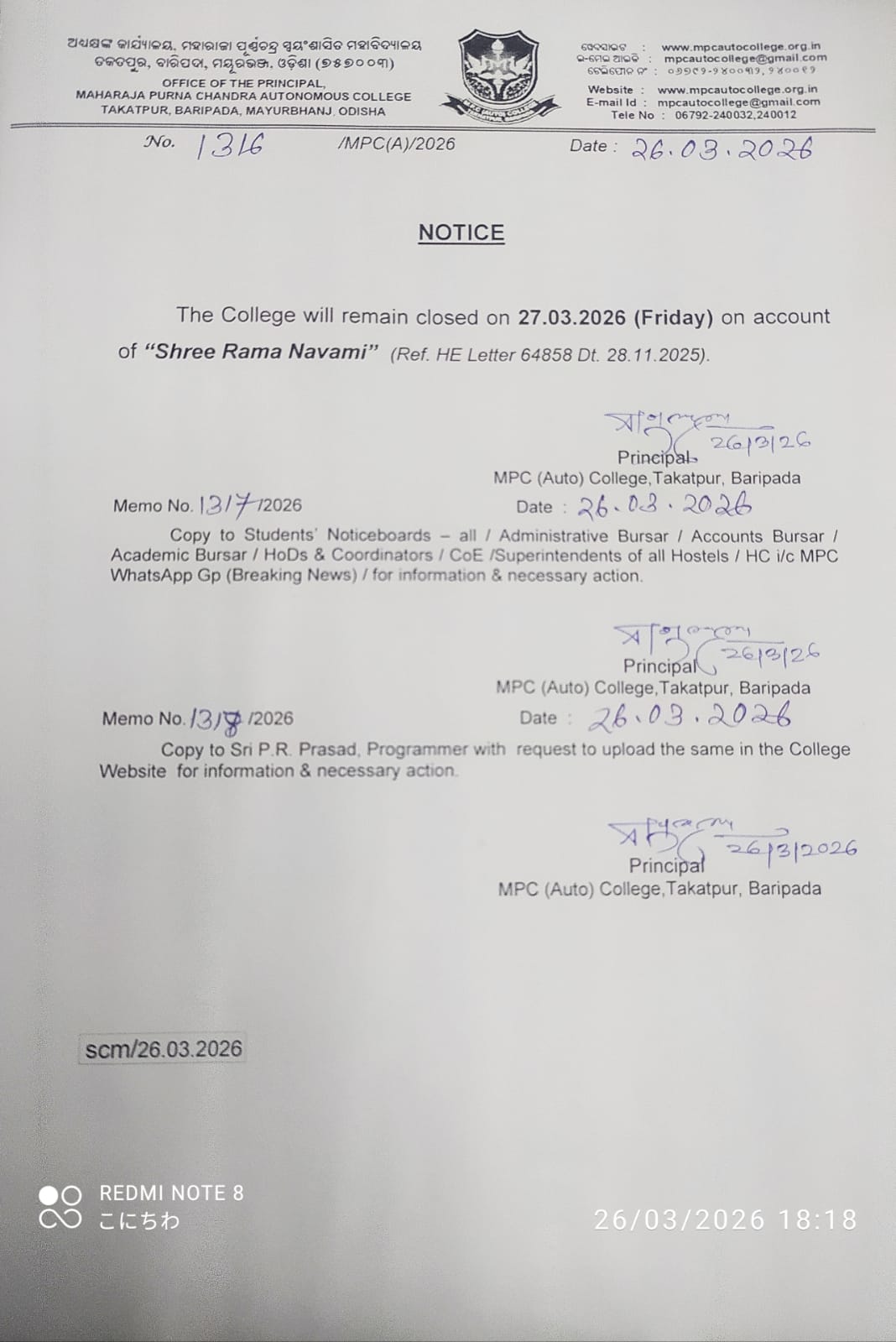 It is my privilege to welcome you to MPC Autonomous College, Baripada, an institution with a proud legacy of academic excellence, cultural vibrancy, and ...
