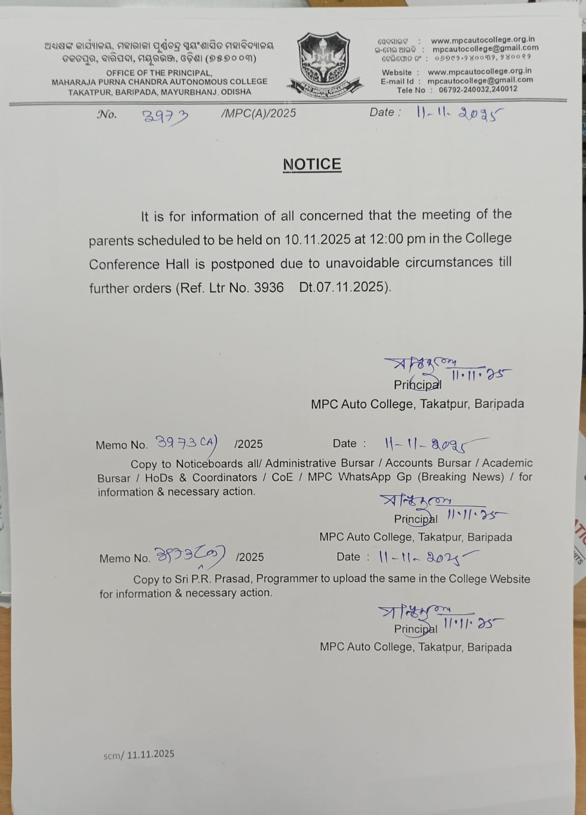 17/11/2025 : Postponement of General Body Meeting of Alumni Association