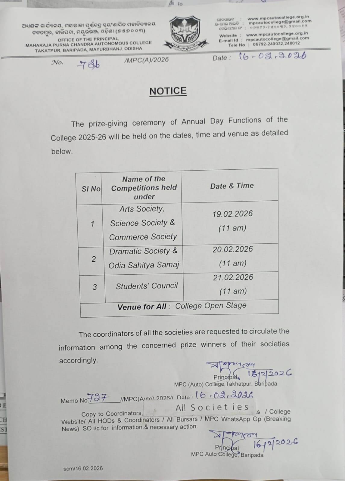 17/01/2026 : EMPANELMENT VENDORS FOR THE SUPPLY OF BOOKS TO CENTRAL LIBRARY OF M.P.C. AUTONOMOUS COLLEGE, TAKHATPUR, BARIPADA